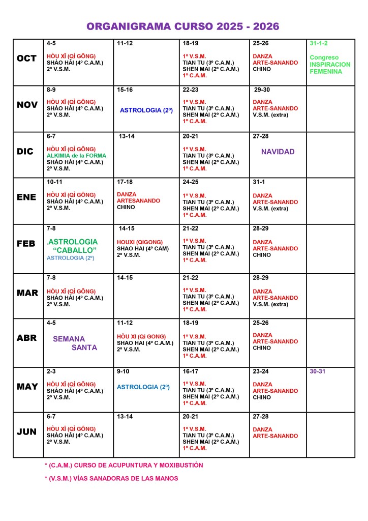 Los practicantes de la medicina tradicional china explican que nuestros cuerpos atraviesan un patrón cíclico anual, y que nuestros 365 puntos de acupuntura se abren y cierran correspondientemente con la rotación del cosmos. Si podemos aprender las cuestiones básicas de esta sabiduría antigua, viviendo con la naturaleza en vez de en contra de ella, podemos hacer el mejor uso de las oportunidades para mejorar nuestro bienestar con el menor esfuerzo.